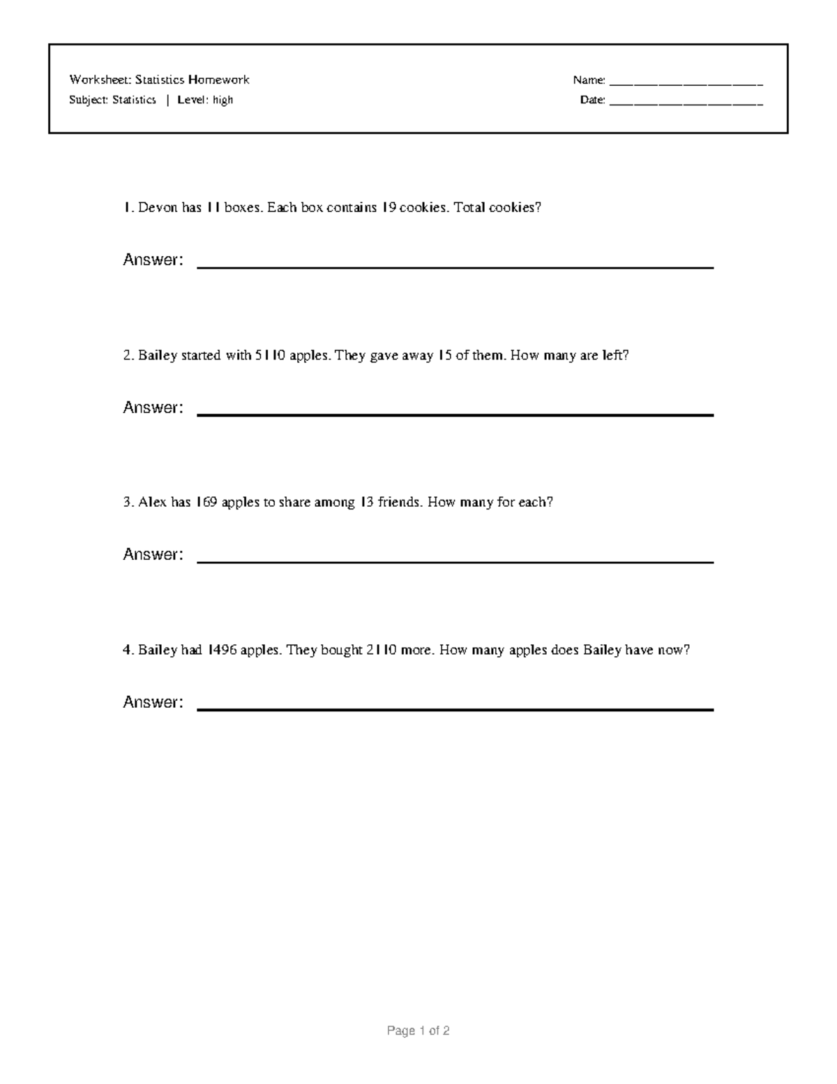 Statistics Homework 1 - Practice Worksheet - Studocu