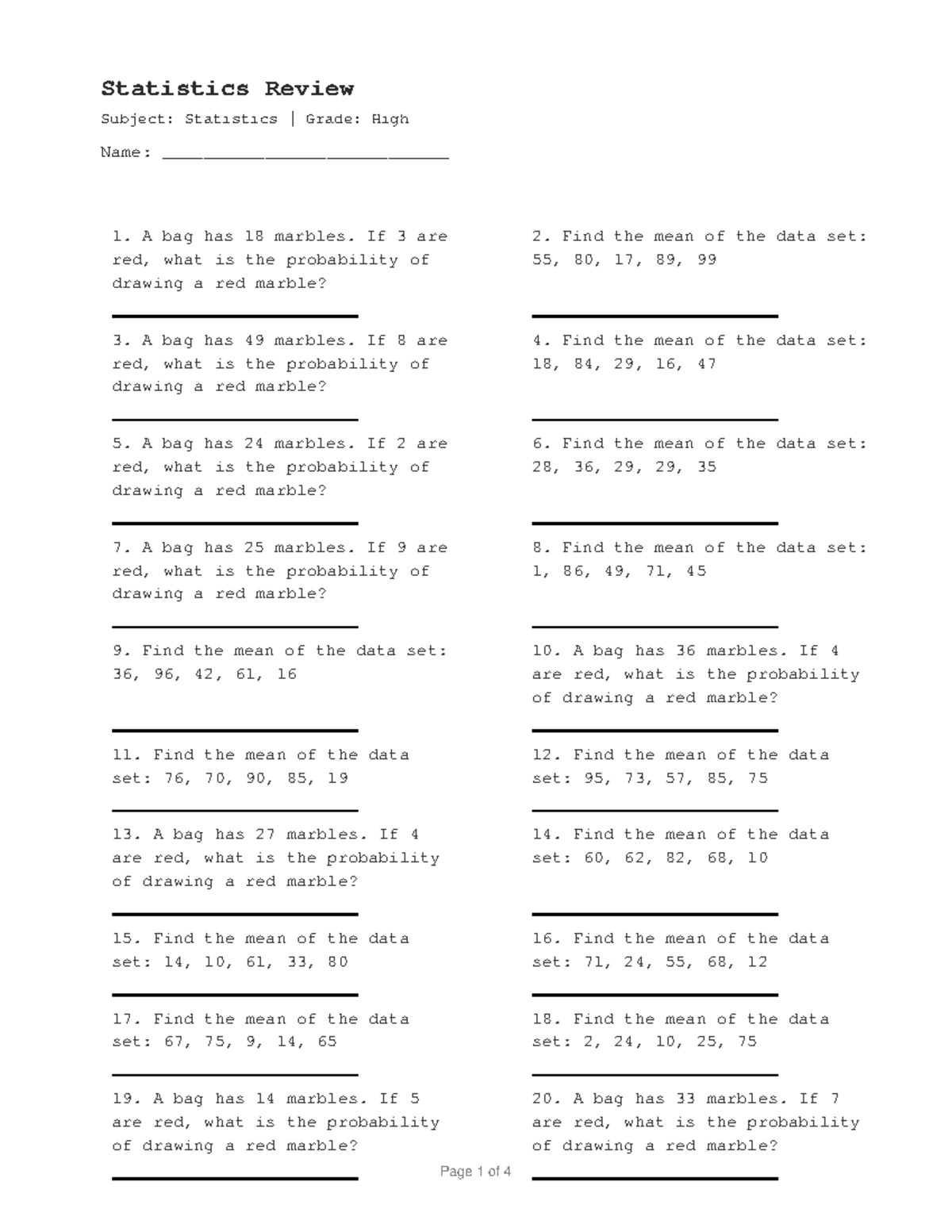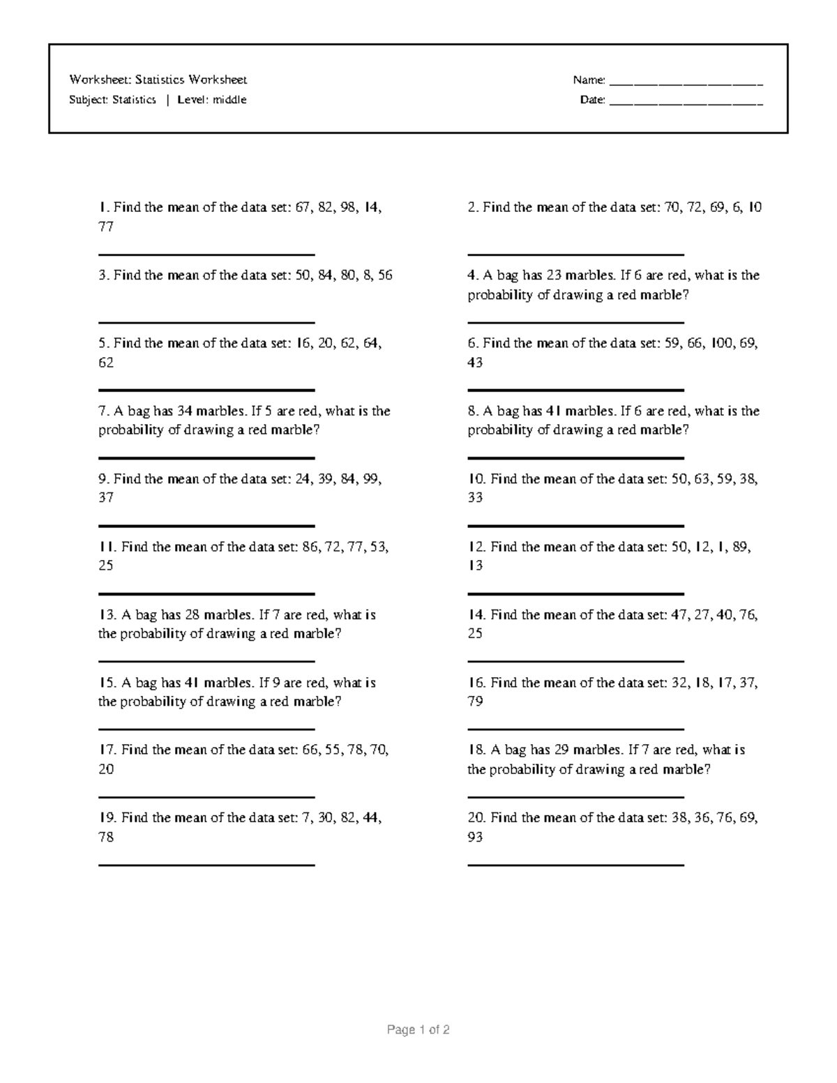 Statistics Worksheet 10: Mean & Probability Problems - Studocu