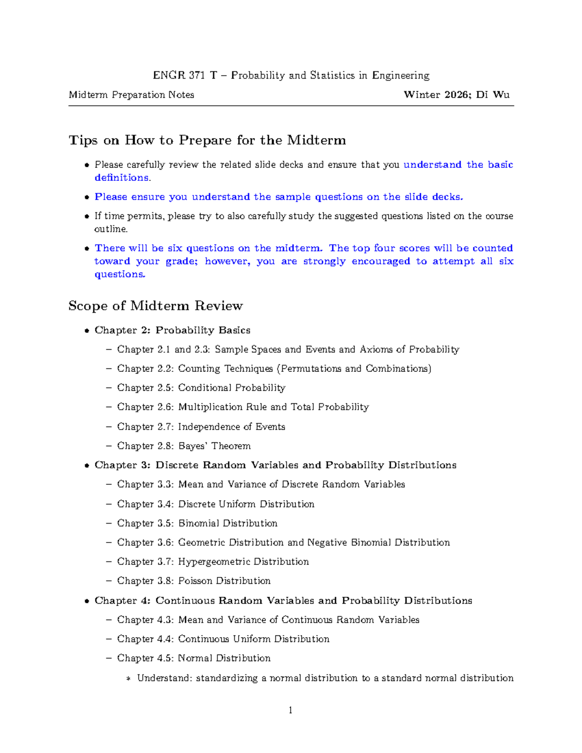 ENGR 371 Midterm Prep Notes: Probability & Statistics Guide - Studocu