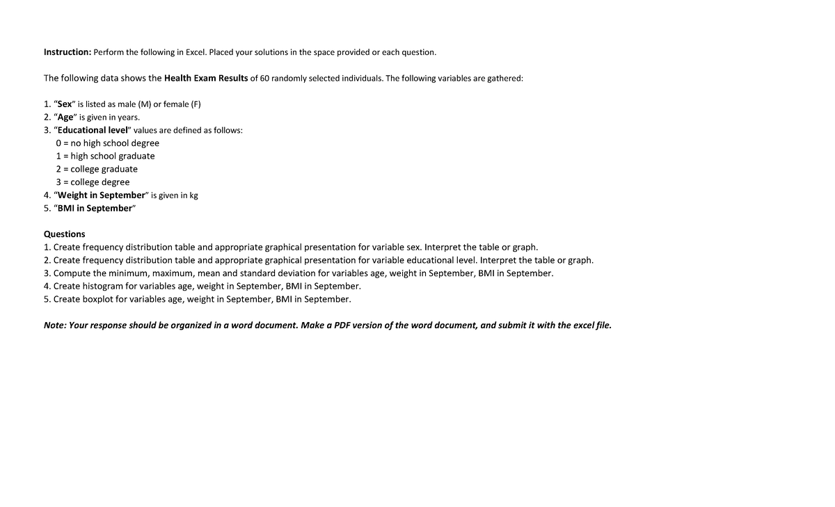 Health Exam Results Analysis - STAT Document - Studocu