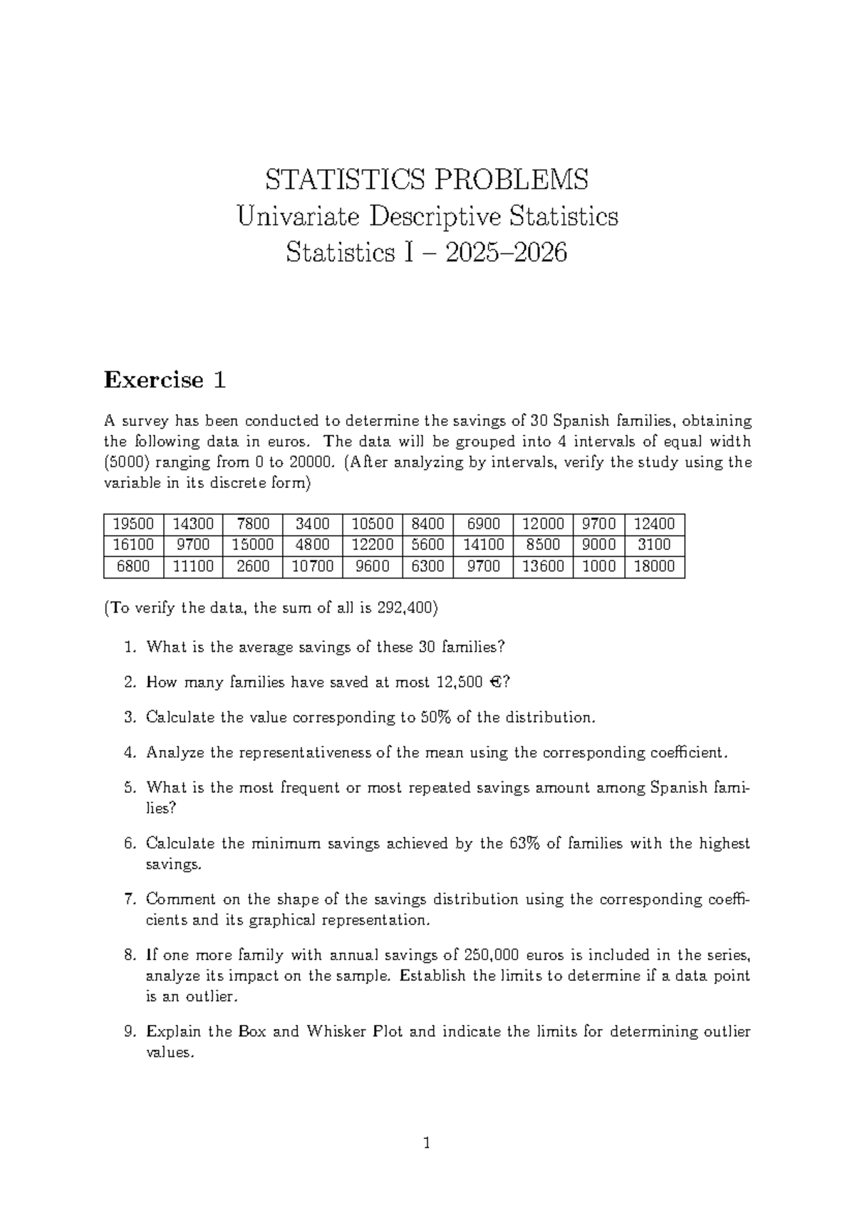 STATISTICS I Exercise 1: Univariate Descriptive Analysis - Studocu