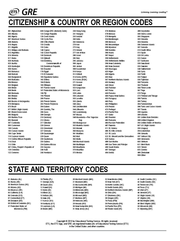 Country Code State Code List | PDF