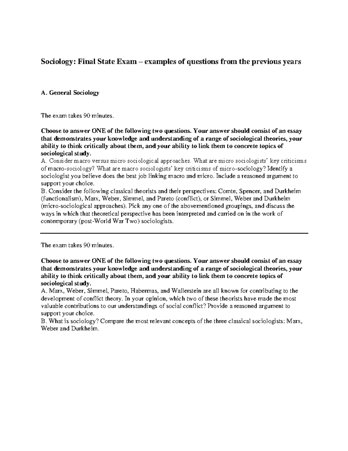Final state exam examples - Sociology: Final State Exam – examples of ...