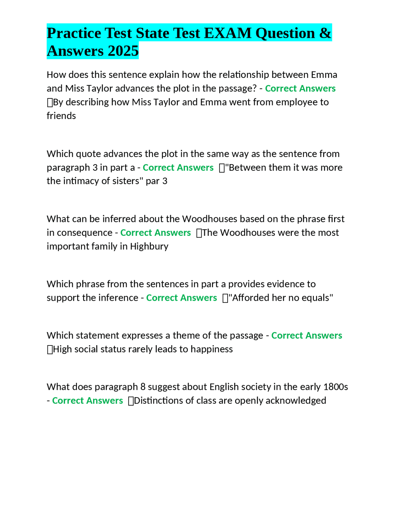 Practice Test State Test EXAM Questions & Answers 2025: Literature ...