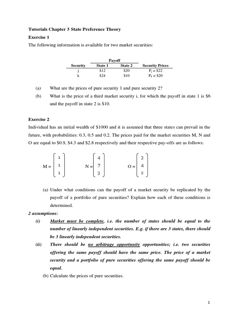State Preference Theory Problems | PDF | Financial Economics ...