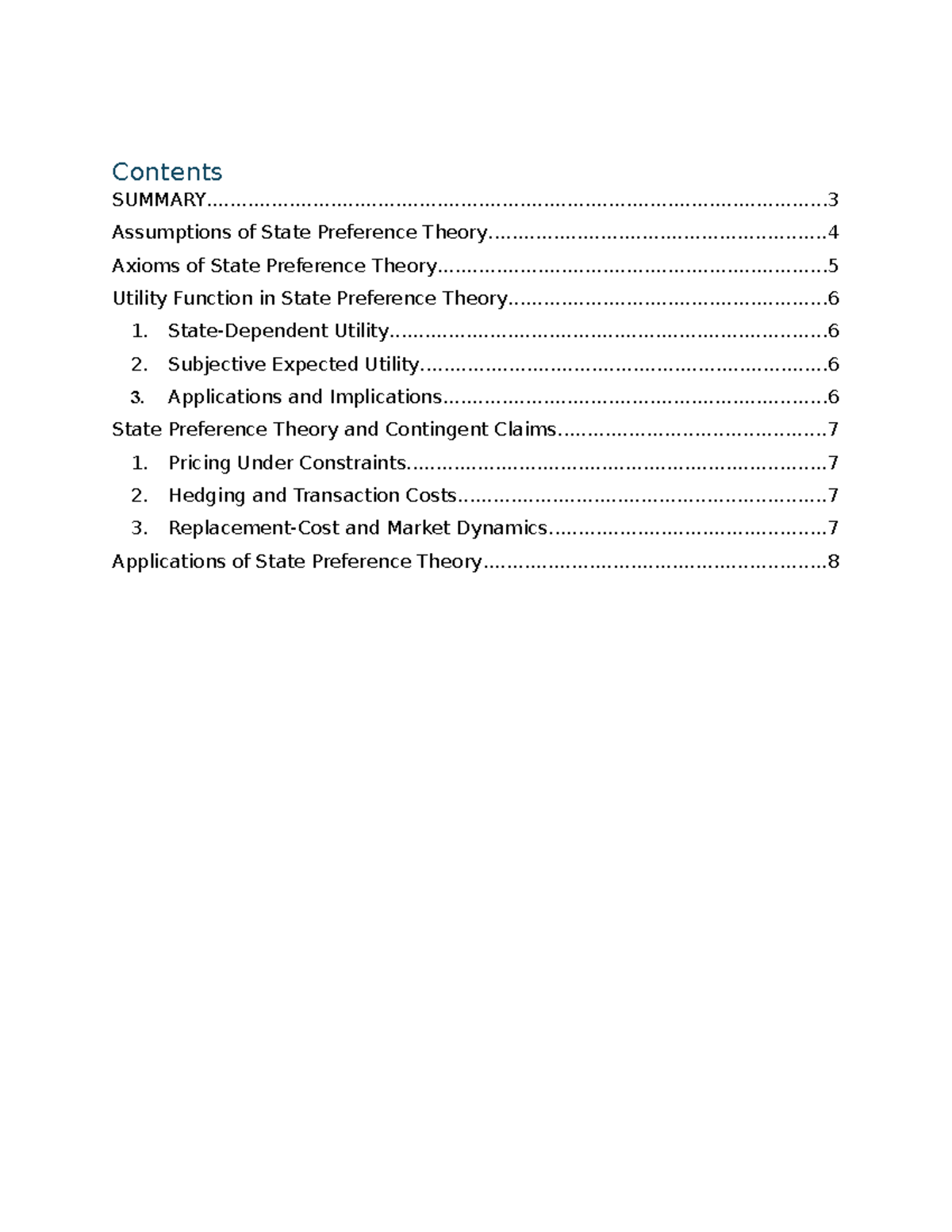 State Preference Theory Approach. | PDF | Utility | Risk Aversion