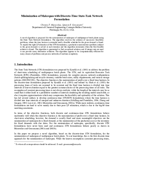 (PDF) Minimization of the Makespan with a Discrete-Time State−Task ...