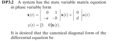 [Solved]: DP3.2 A system has the state variable matrix e