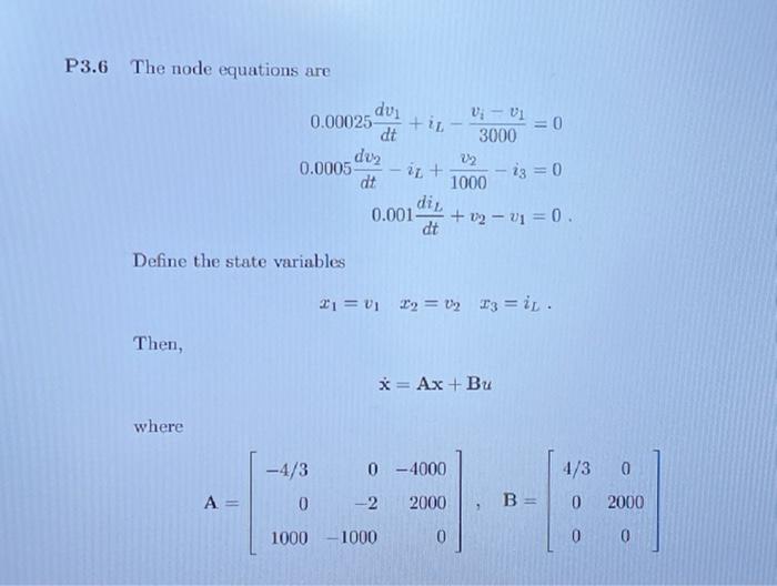 Solved P3.6 Determine the state variable matrix equation to | Chegg.com