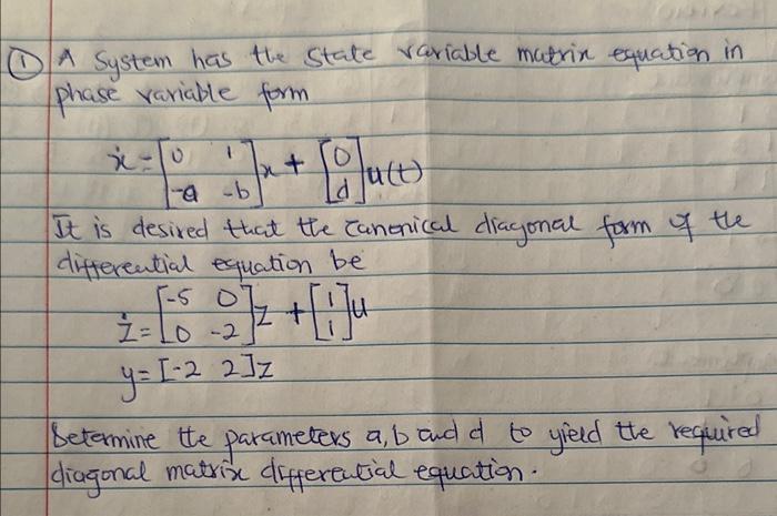 Solved Find state equations in phase-variable matrix form | Chegg.com