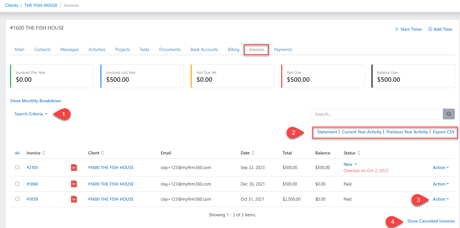 Client - Invoice Tab – Firm360