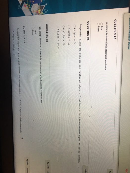 Solved A comma is also called a statement terminator. True | Chegg.com
