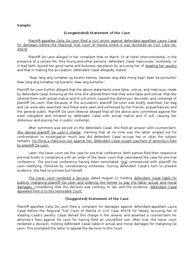 STATEMENT OF CASE | Download Free PDF | Lawsuit | Damages