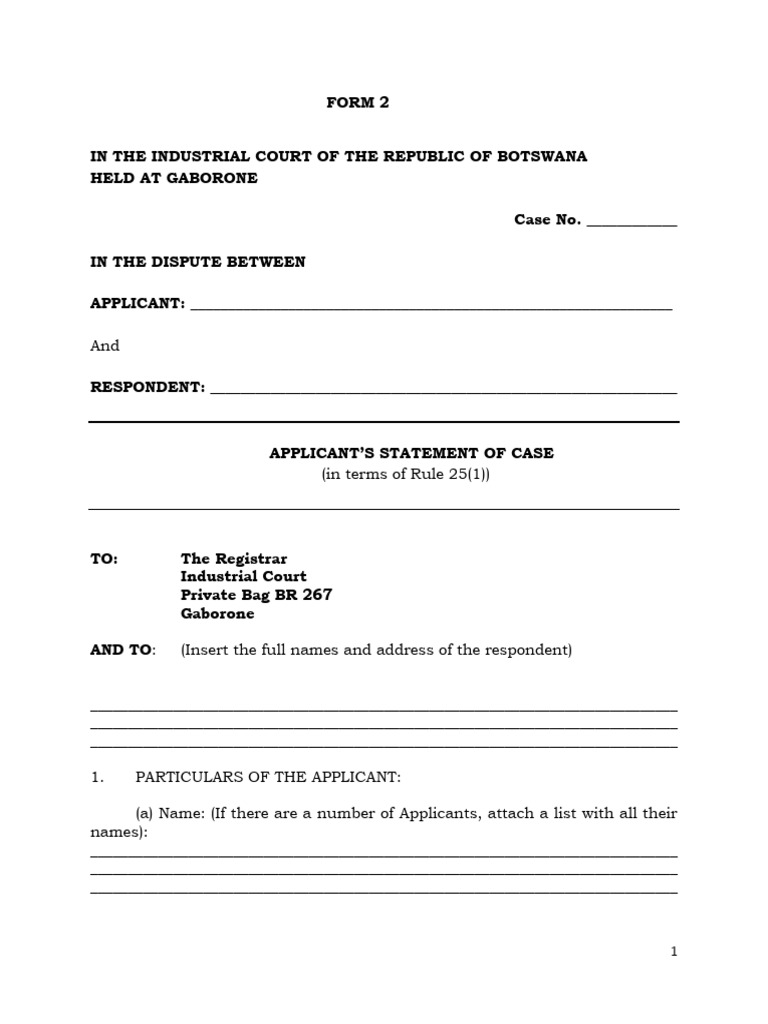 FORM 2 - Applicant's Statement of Case | PDF