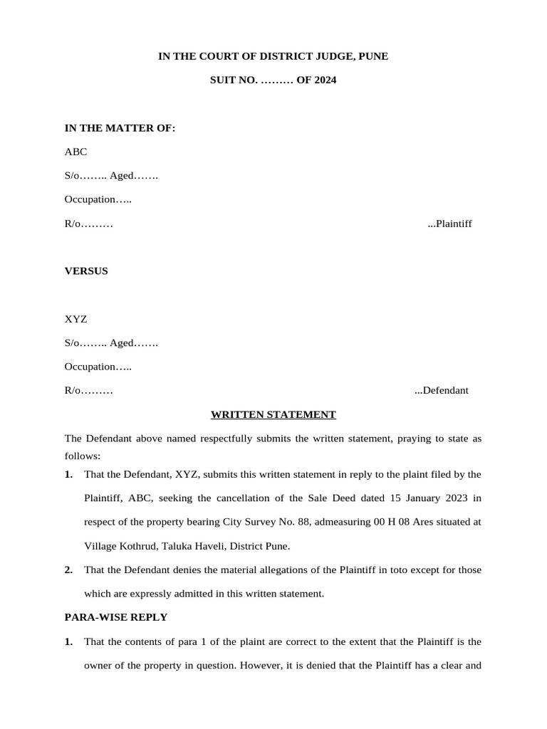 Written Statement For Court Template