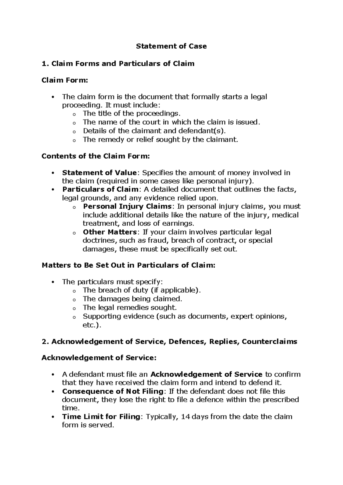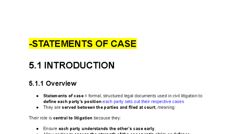 6. Statement of Case - Detailed Outline and Key Rules - Studocu