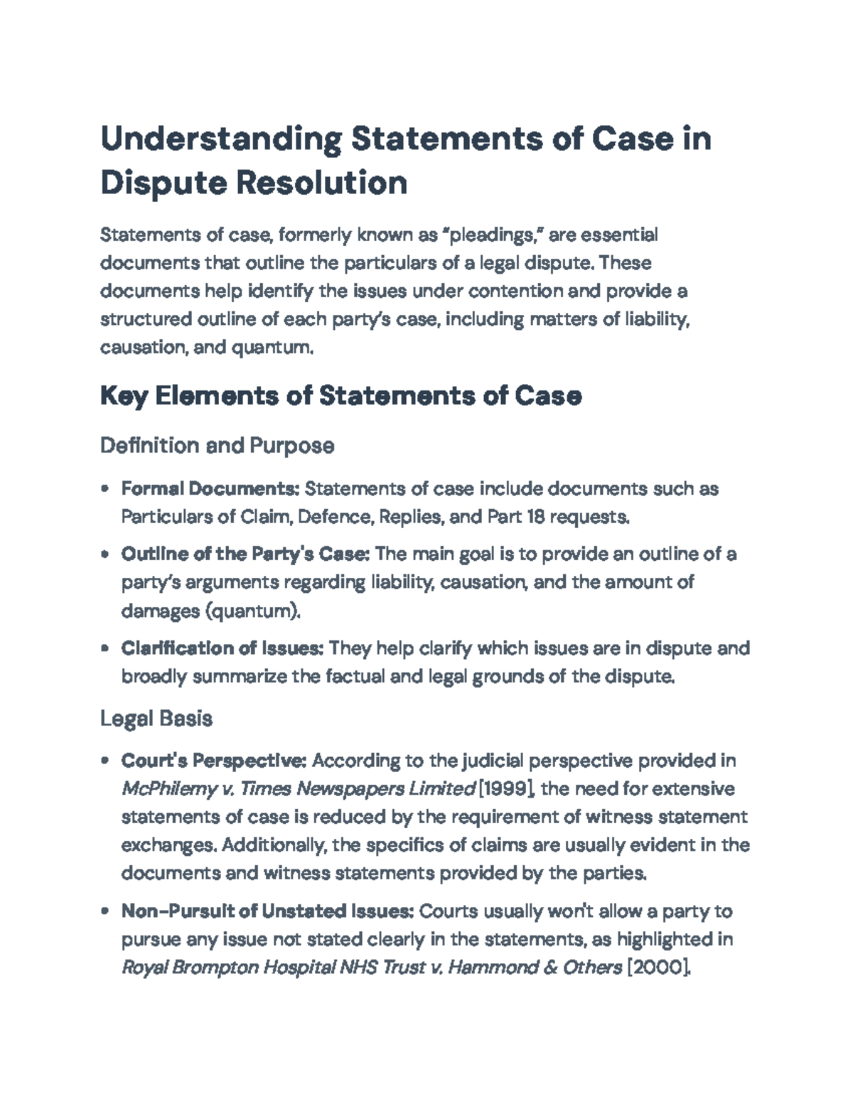 Understanding Statements of Case in Dispute Resolution: A Legal ...
