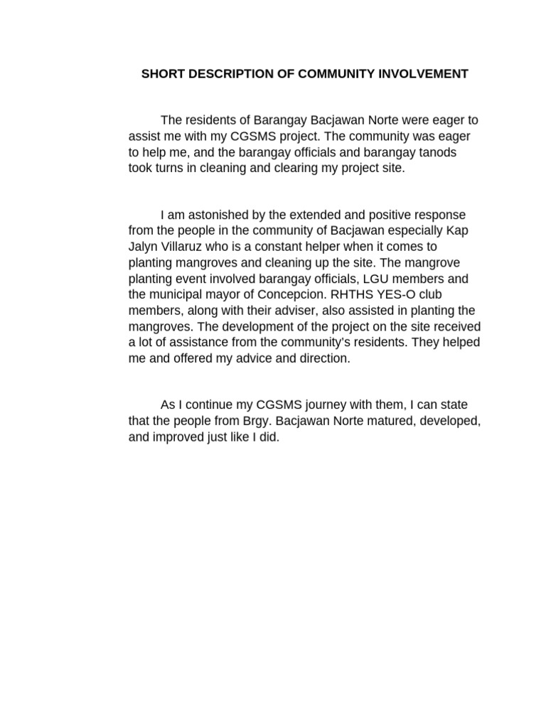 Short Description of Community Involvement of The Project | PDF