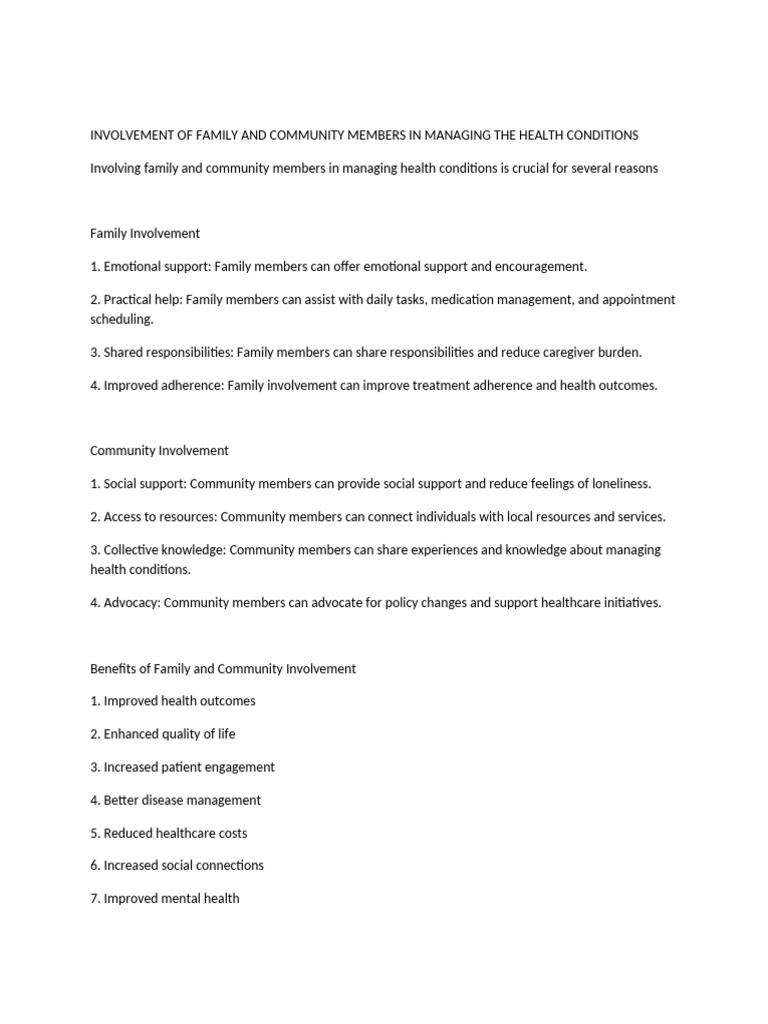 Involvement of Family and Community | PDF | Caregiver | Health Care