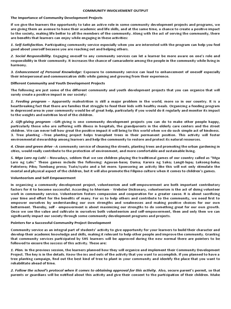 Community Involvement Output The Importance of Community Development ...