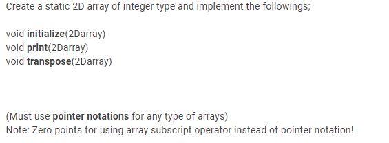 Solved Create a static 2D array of integer type and | Chegg.com