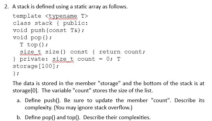 Solved 2. A stack is defined using a static array as | Chegg.com