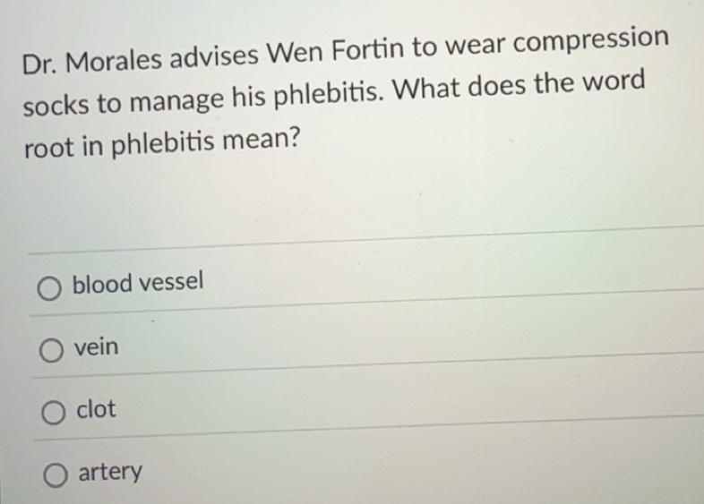 Solved: Dr. Morales advises Wen Fortin to wear compression socks to ...