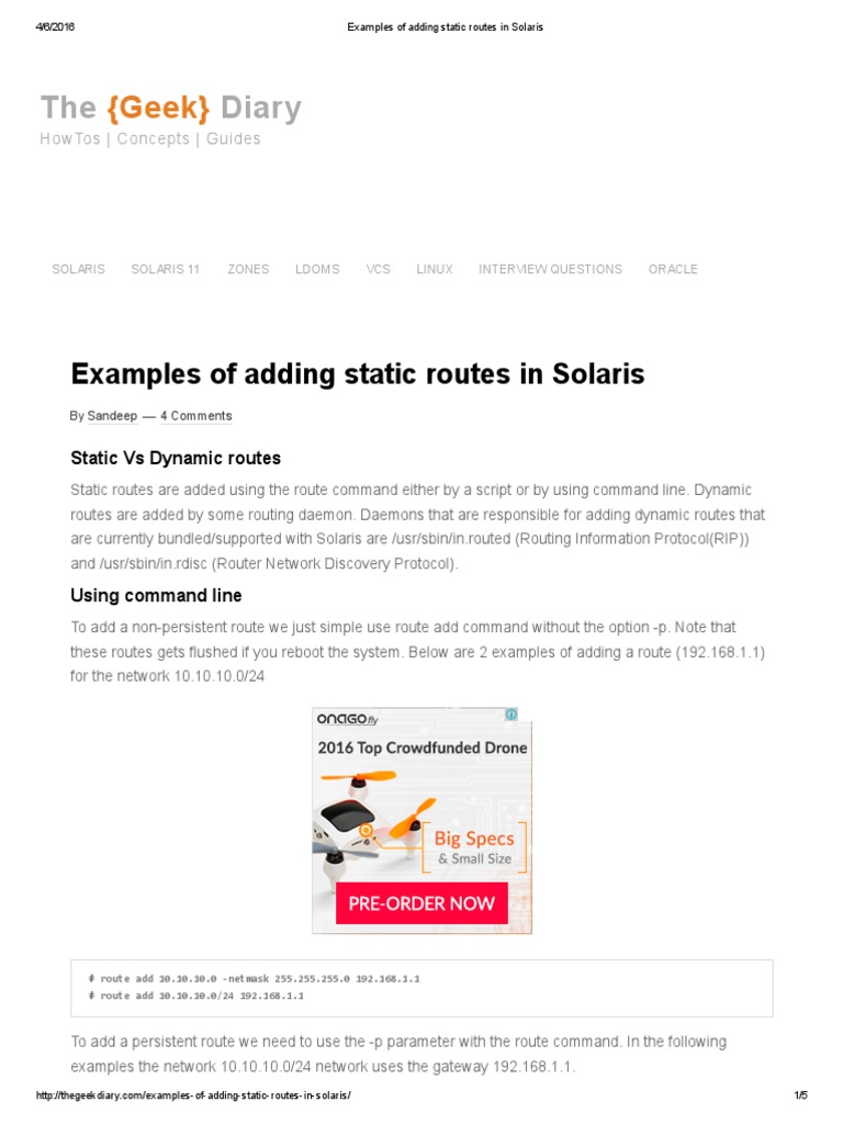 Examples of Adding Static Routes in Solaris | PDF | Network Layer ...