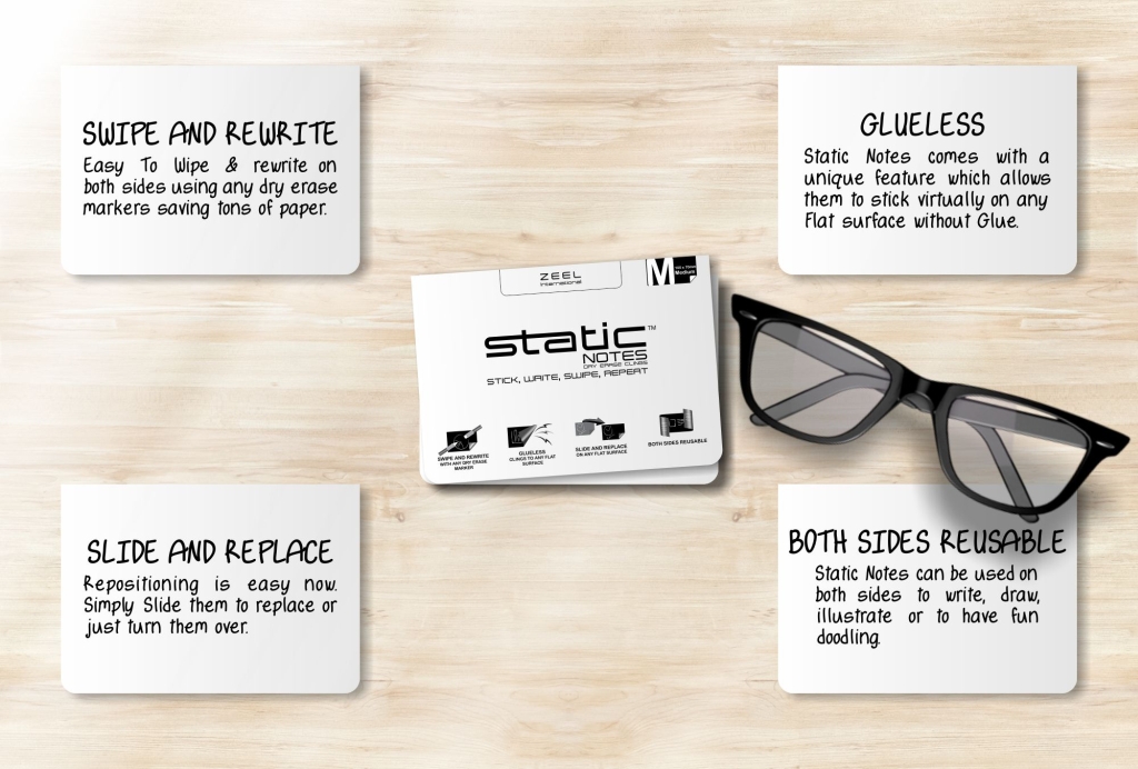 Static™ Dry Erase Notes – White- Medium 100mm x 70mm – Static Family
