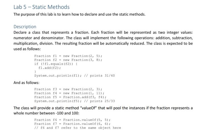 Solved Lab 5-Static Methods The purpose of this lab is to | Chegg.com