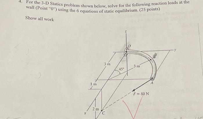 Solved 4. For the 3-D Statics problem shown below, solve for | Chegg.com