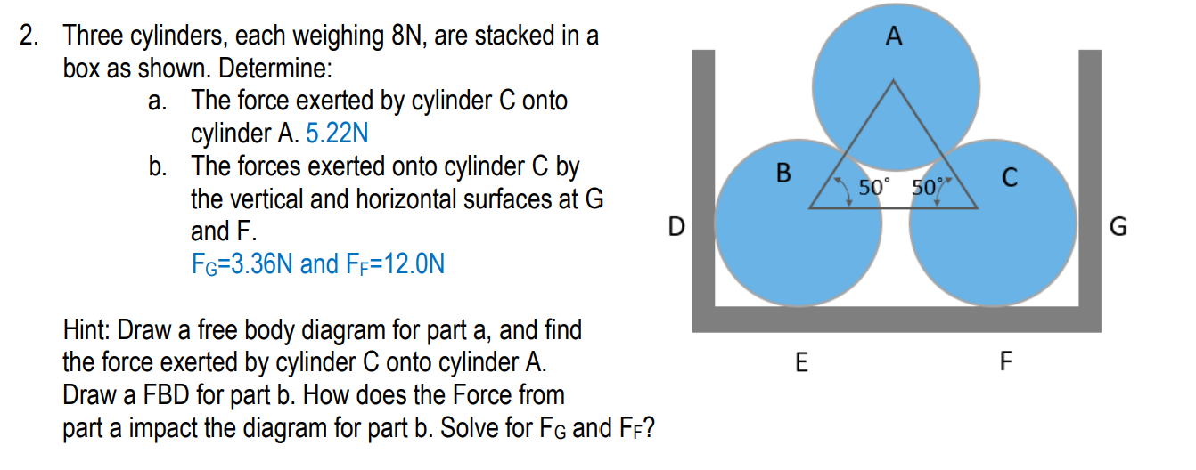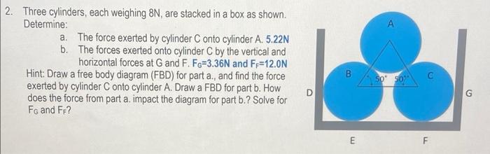 Solved А 2. Three cylinders, each weighing 8N, are stacked | Chegg.com