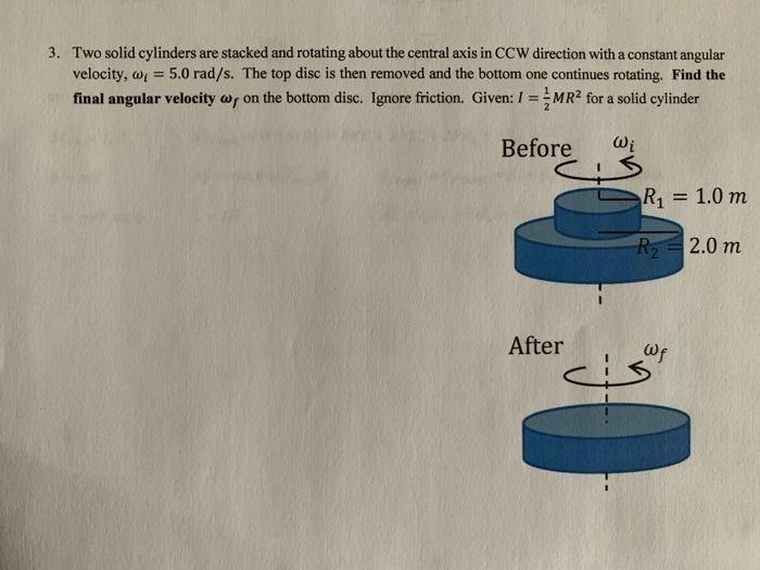 Solved Two solid cylinders are stacked and rotating about | Chegg.com