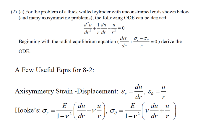 Solved (2) (a) For the problem of a thick walled cylinder | Chegg.com