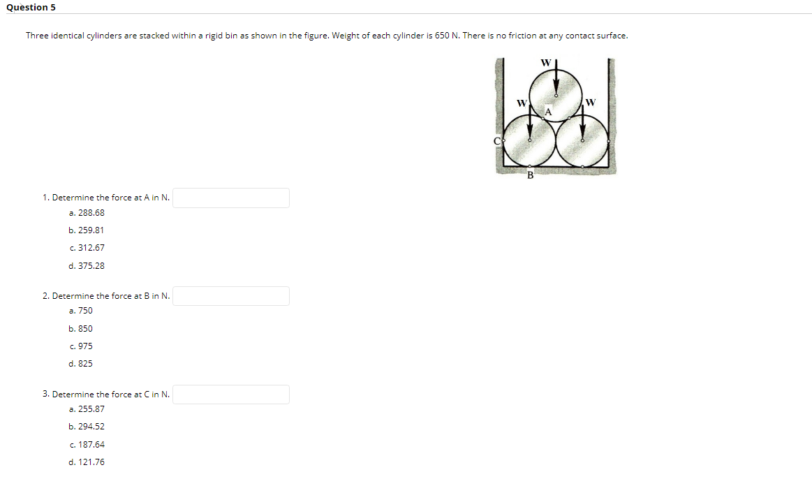Solved Question 5 Three identical cylinders are stacked | Chegg.com