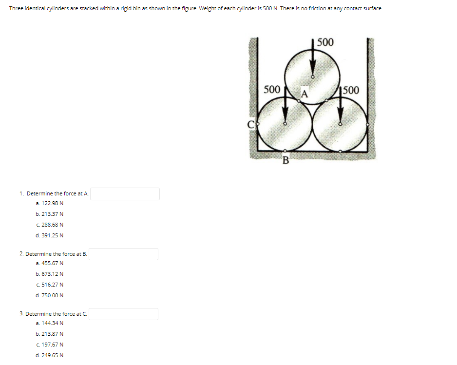 Solved 3. Three cylinders are stacked inside the container | Chegg.com