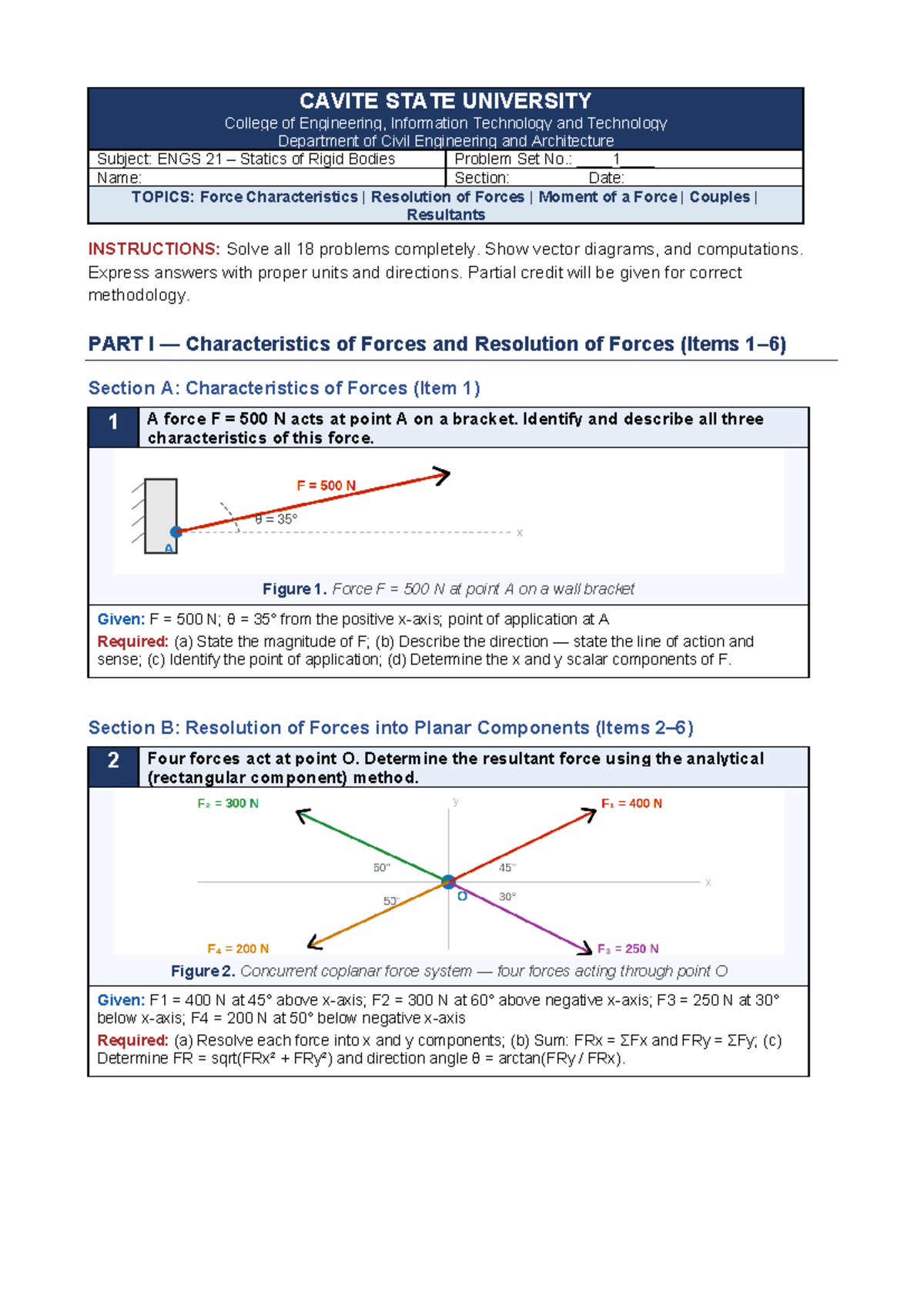 ENGS 21 Statics of Rigid Bodies Problem Set Solutions - Studocu