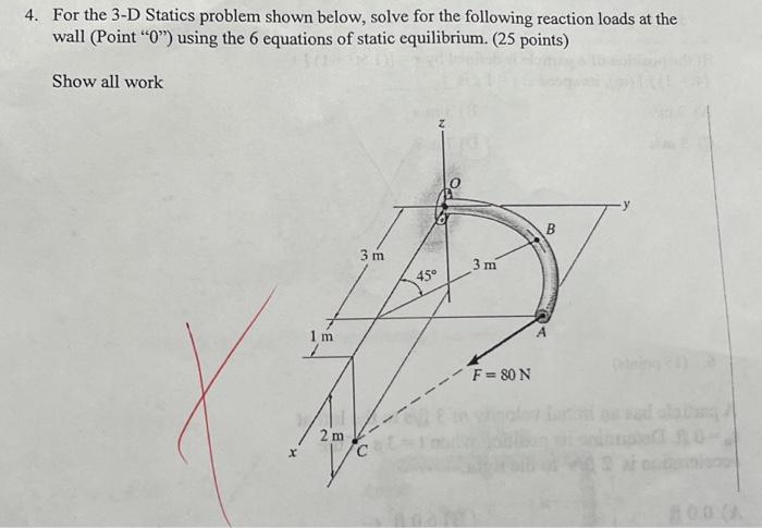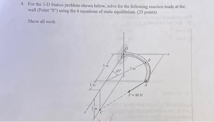 Solved 4. For the 3-D Statics problem shown below, solve for | Chegg.com