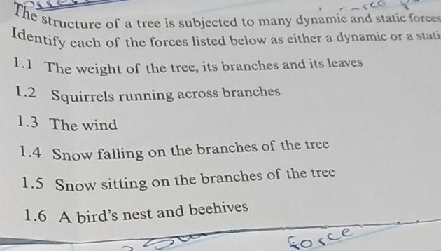 The structure of a tree is subjected to many | StudyX