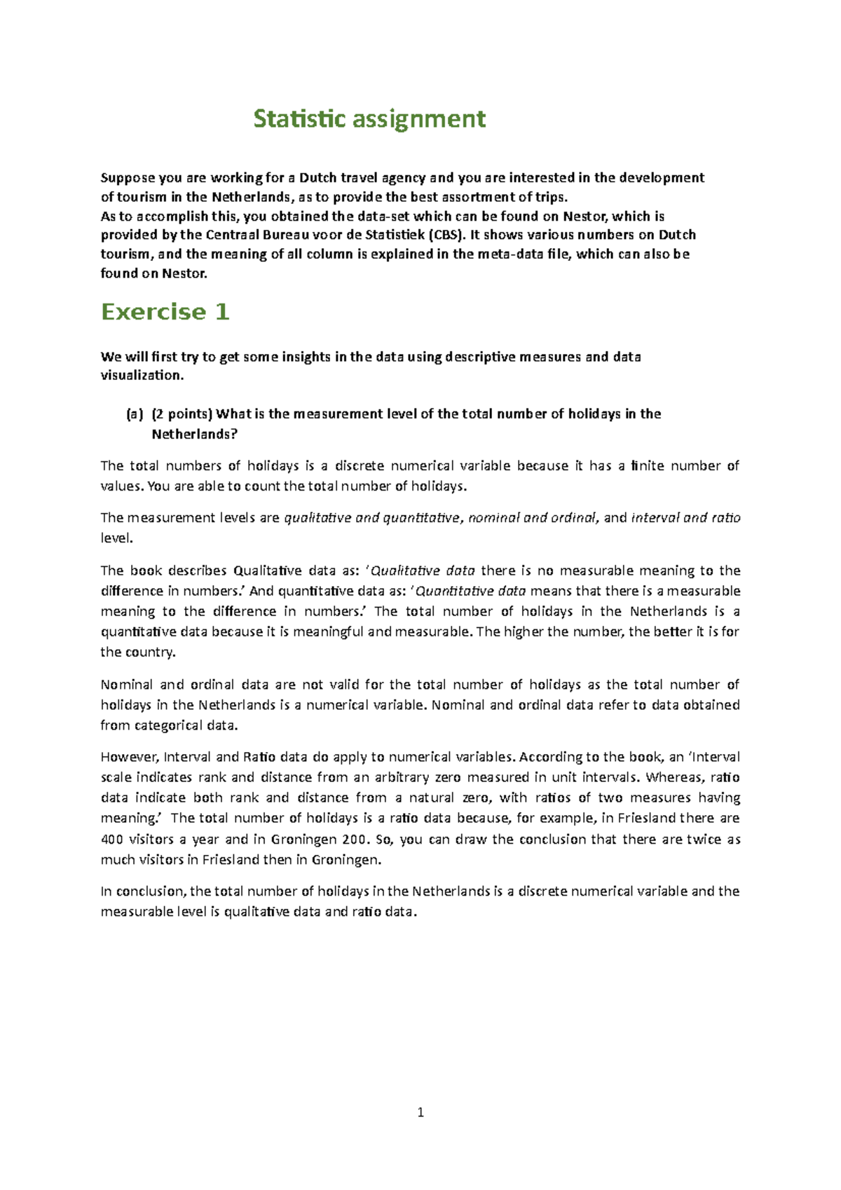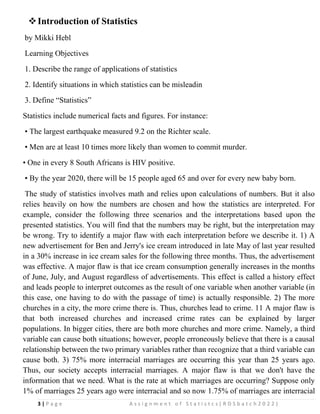 Introduction to Statistics Assignment Huye - Page 1 of 2 Group ...
