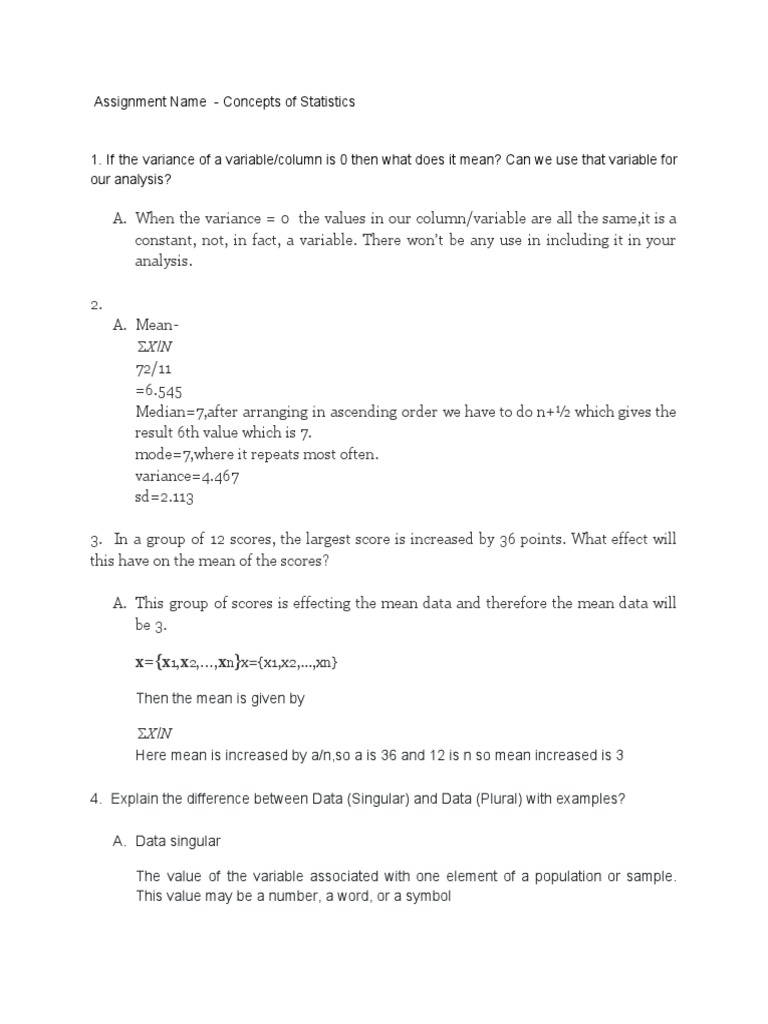 Statistics Assignment Sample With Solutions | PDF | Statistical ...
