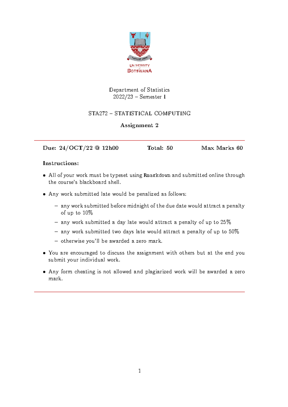 STA272 Statistical Computing Assignment 2 Guidelines - Studocu