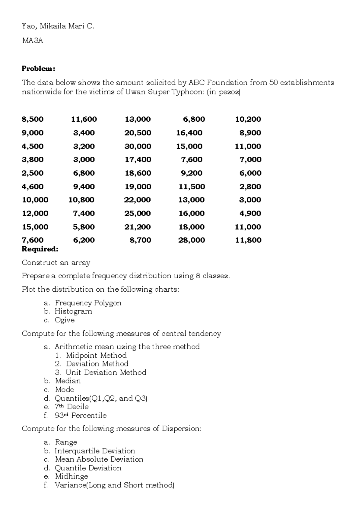 MA3A Activity 2: Statistical Analysis for Uwan Typhoon Relief Fund ...