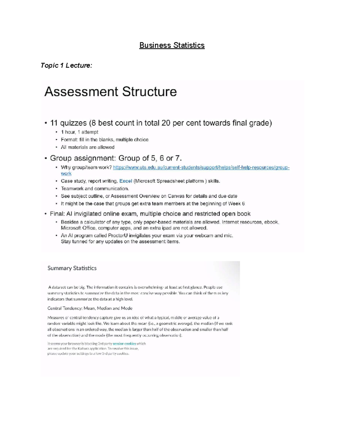 Business Statistics (BUS101) Lecture Notes: Descriptive & Inferential ...