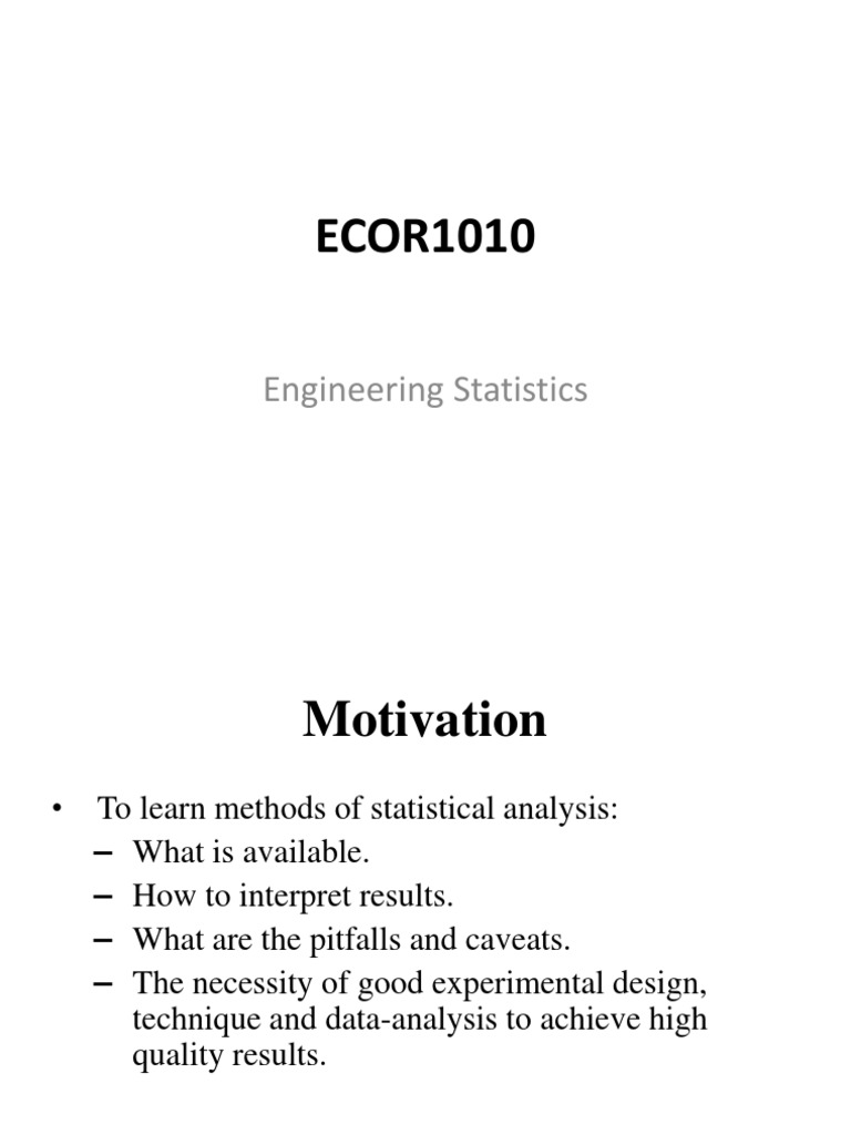 Engineering Data Analysis (Statistics) - Chapter 3 Introduction to ...