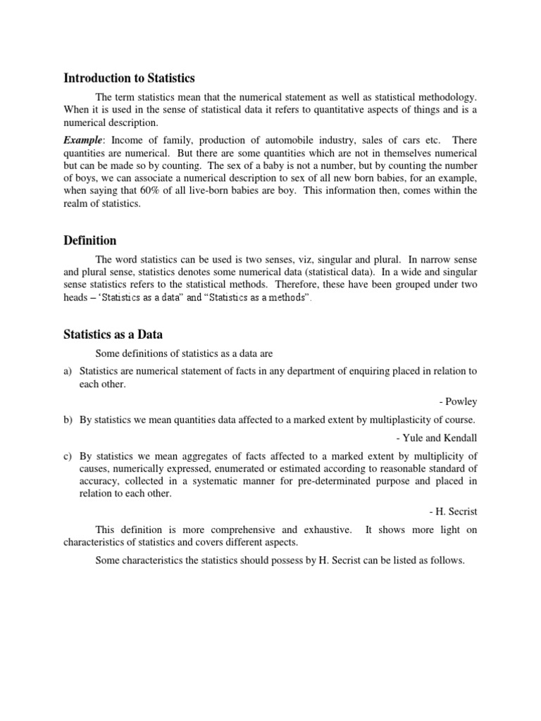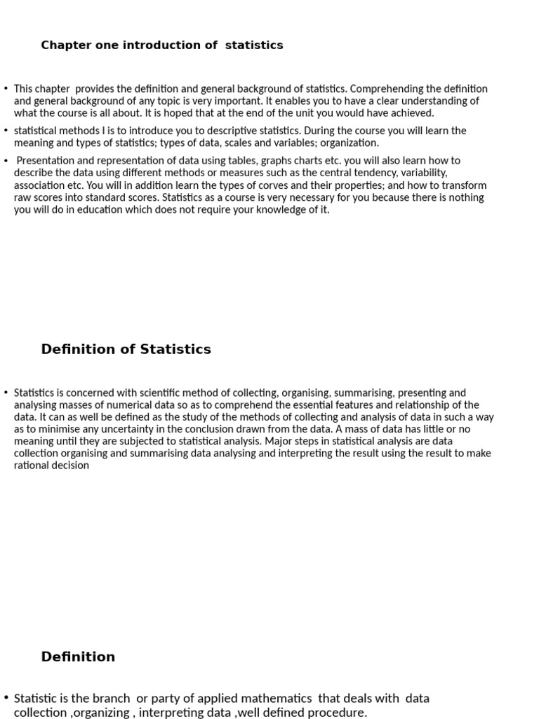 Introduction to Statistics Overview | PDF | Statistics | Level Of ...
