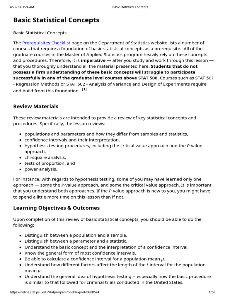 Basic Statistical Concepts Overview | PDF | Statistics | Statistical ...