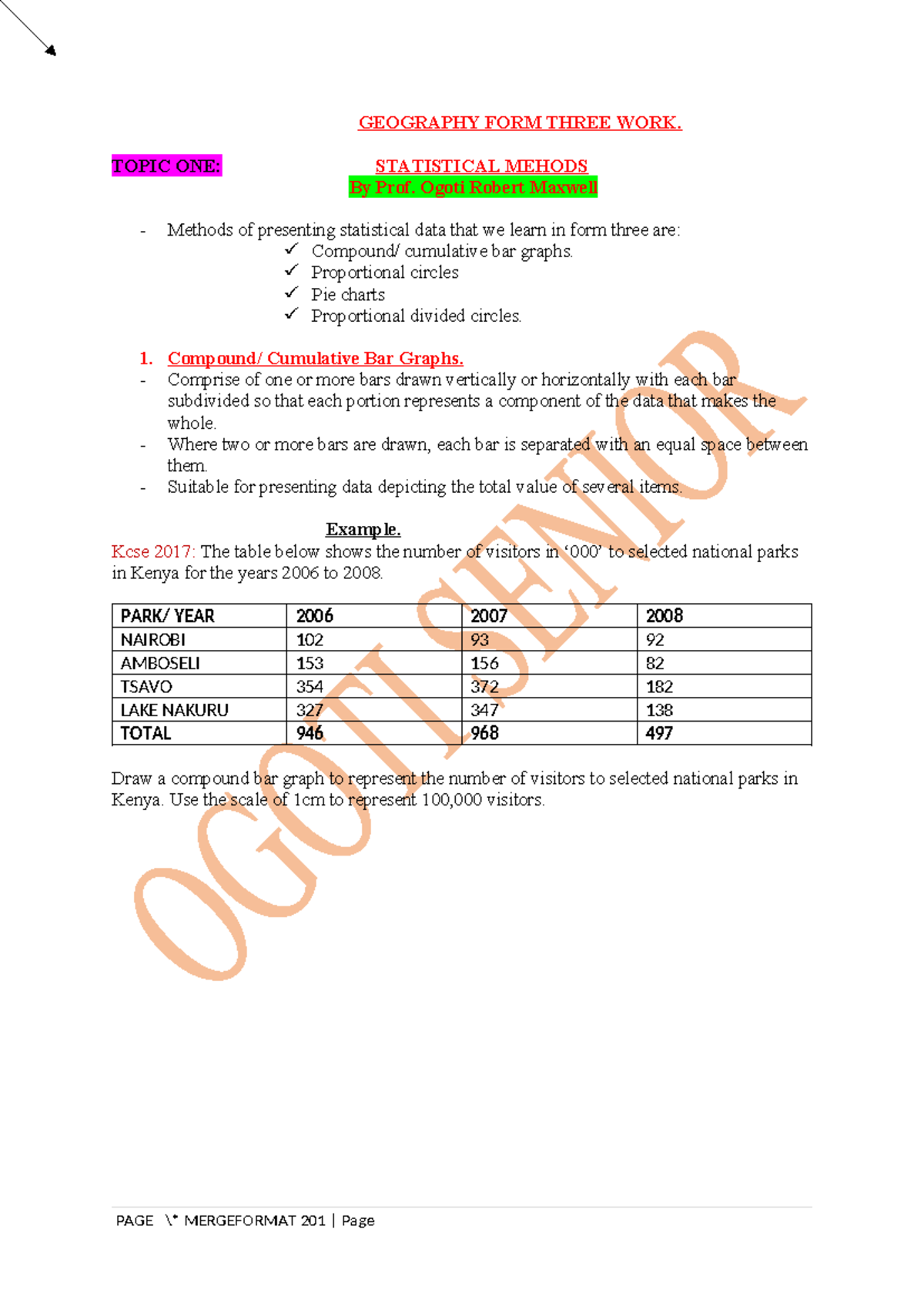 Geography Form Three: Statistical Methods Overview - Prof. Ogoti - Studocu