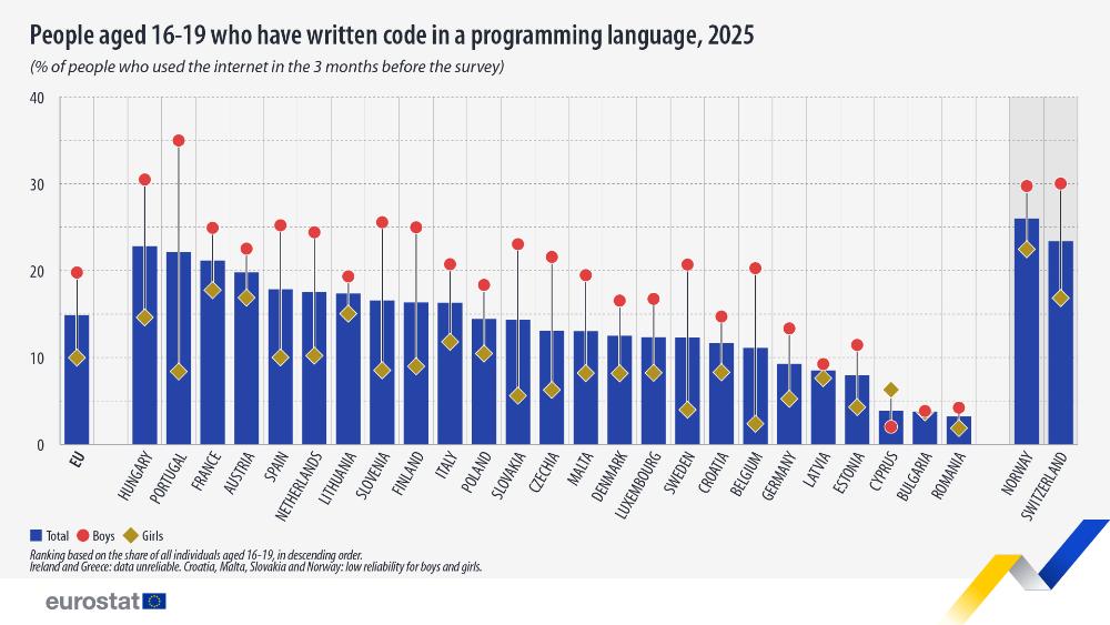 EU girls excel in digital skills, but trail in coding | Kurzy.cz