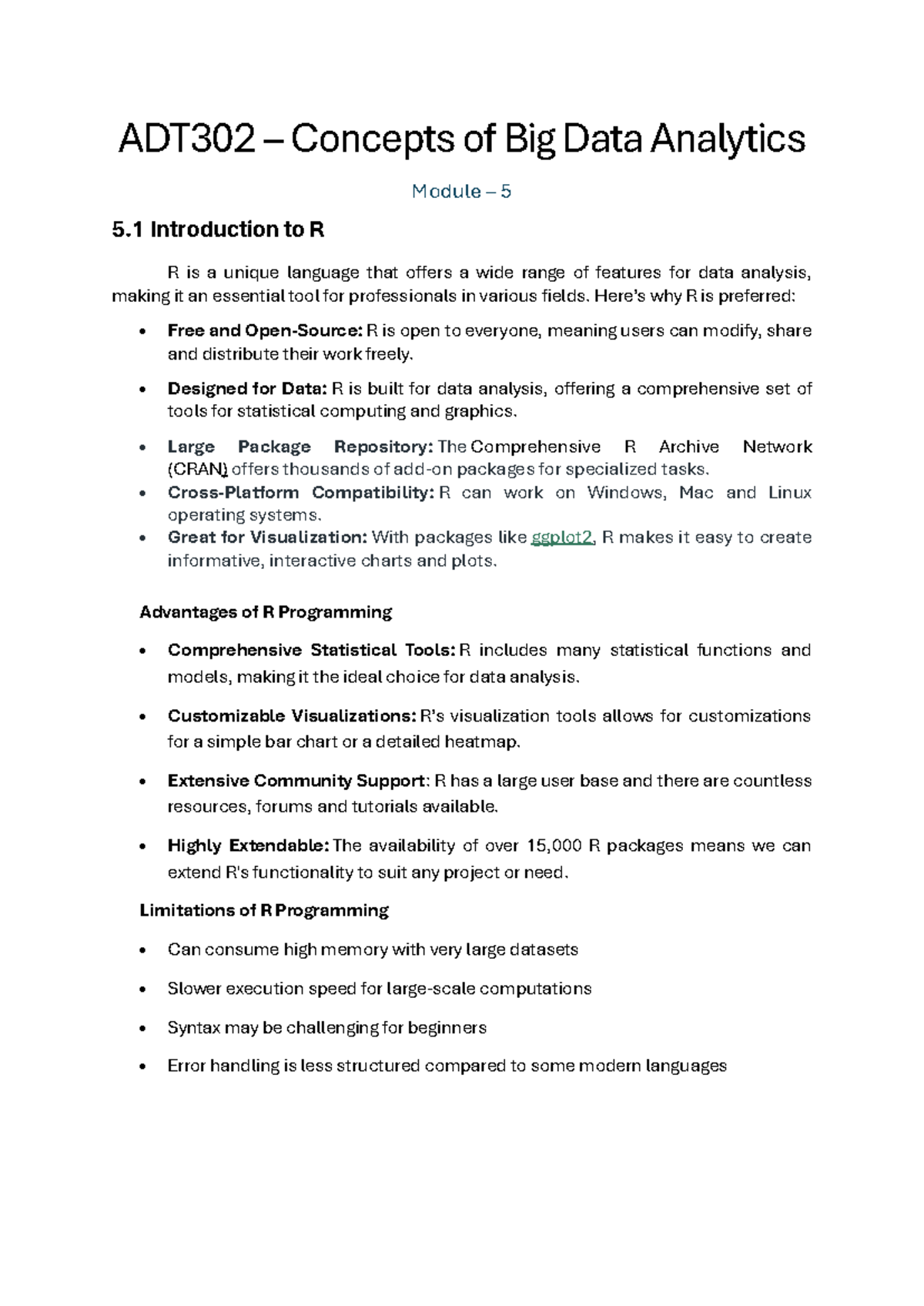 ADT302 Big Data Analytics Module 5: Introduction to R Programming - Studocu
